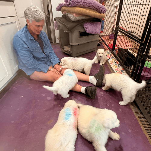 When it comes to positive human experiences during weeks 4-12, you literally cannot do too much. The more positive interactions puppies have now, the more confident and manageable they'll be as adults.